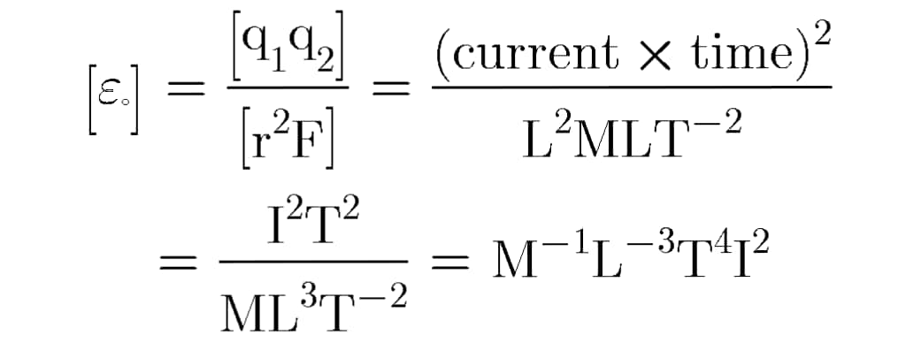 The magnitude of Coulomb Force between two point charges q₁ and q₂ is: F = |q₁q₂|/4πεᤱr² where εᤱ is the permittivity of vaccum. From this expression of force, we have εᤱ = |q₁q₂|/4Ï€r²F. Therefore,